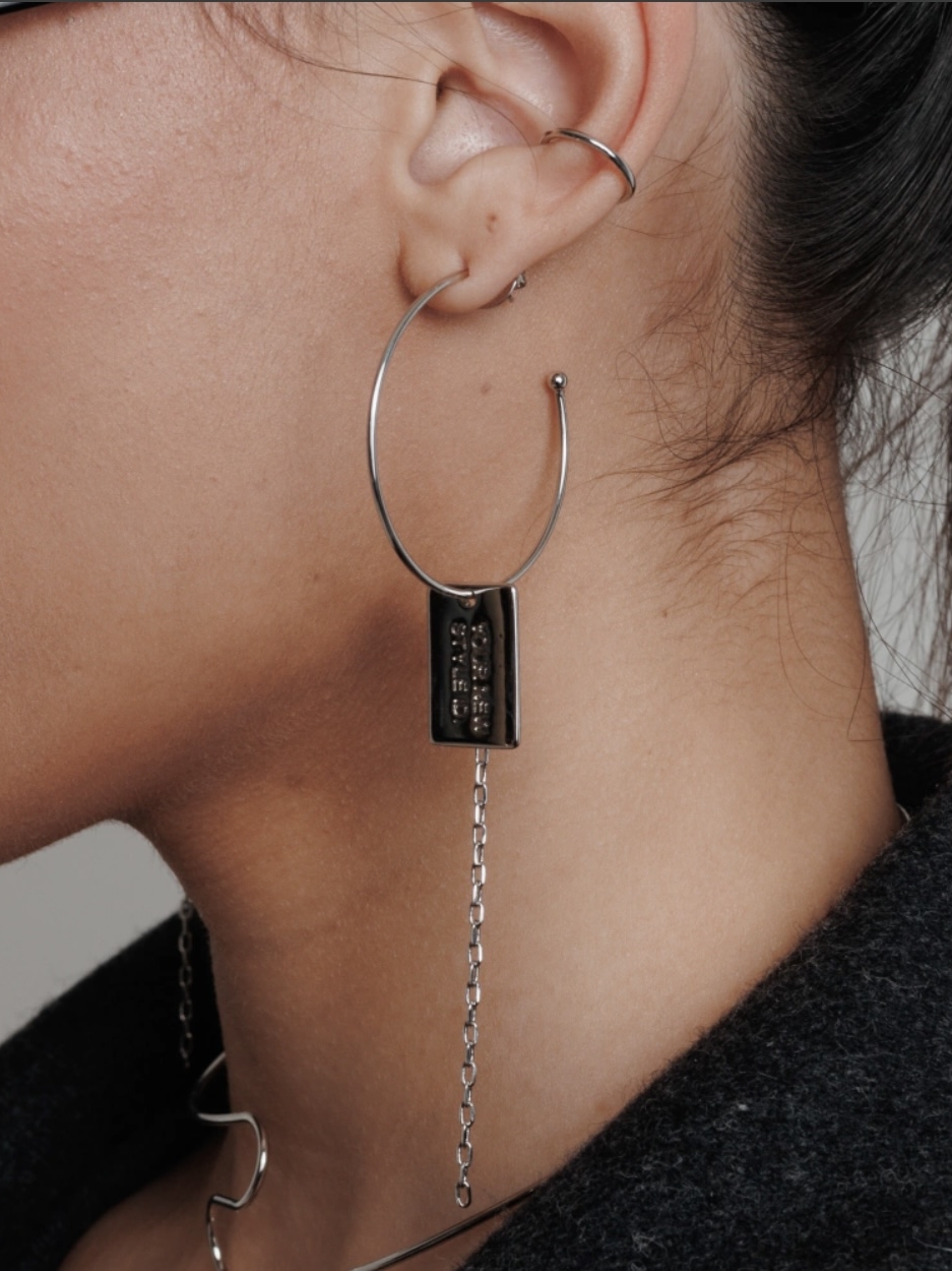 A Argola Style de é um modelo em fio liso, com adorno de corrente e plaquinha, com a frase: YOUR NEW STYLE ID. (4 cm de diâmetro da argola / 0,2 cm de espessura do fio / 12 cm de altura / 2,2 cm de altura e 1,4 largura da plaquinha)