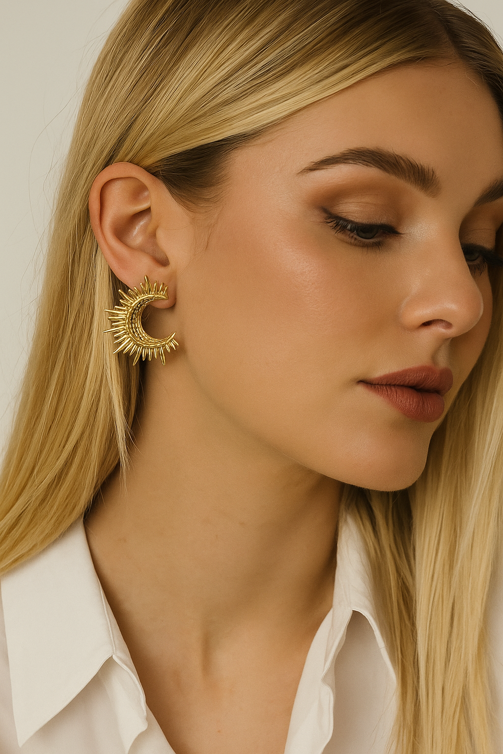 ATENÇÃO: A compra é referente ao par de brincos Lua . As fotos referente ao mix de acessórios são meramente ilustrativas como sugestão de uso, portanto o colar Lua não acompanha e deve ser comprado separadamente. O Brinco Lua refere-se ao brinco da segunda foto.