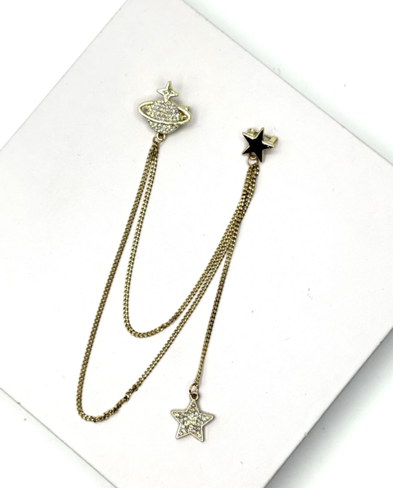 Broche duplo dourado com corrente.