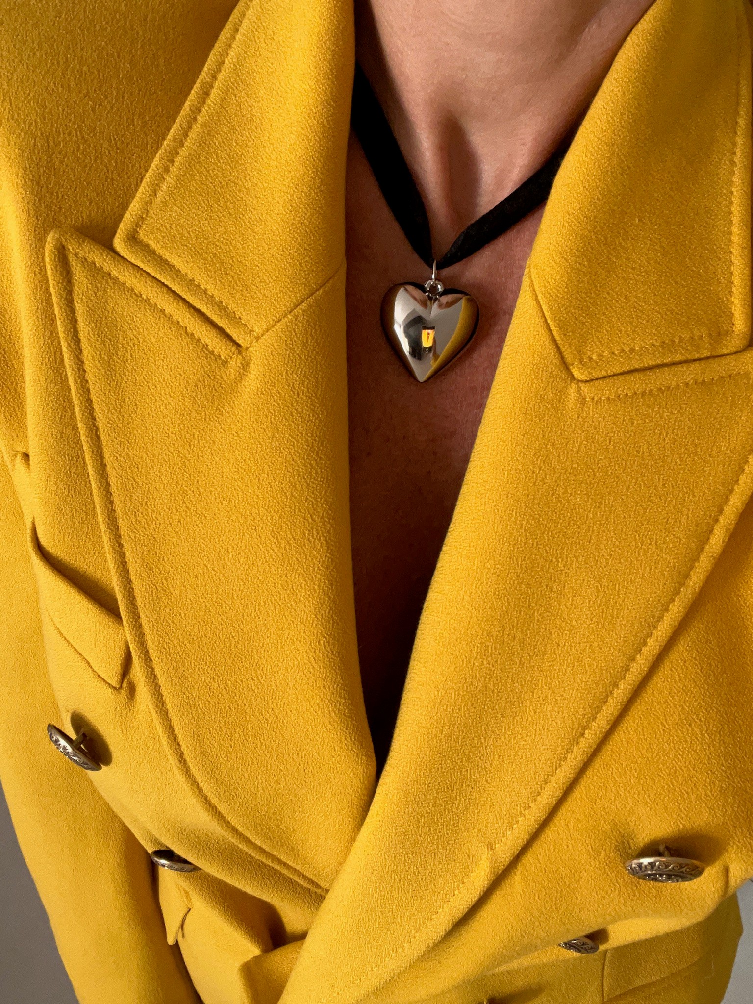 Choker de veludo com pingente de coração prata