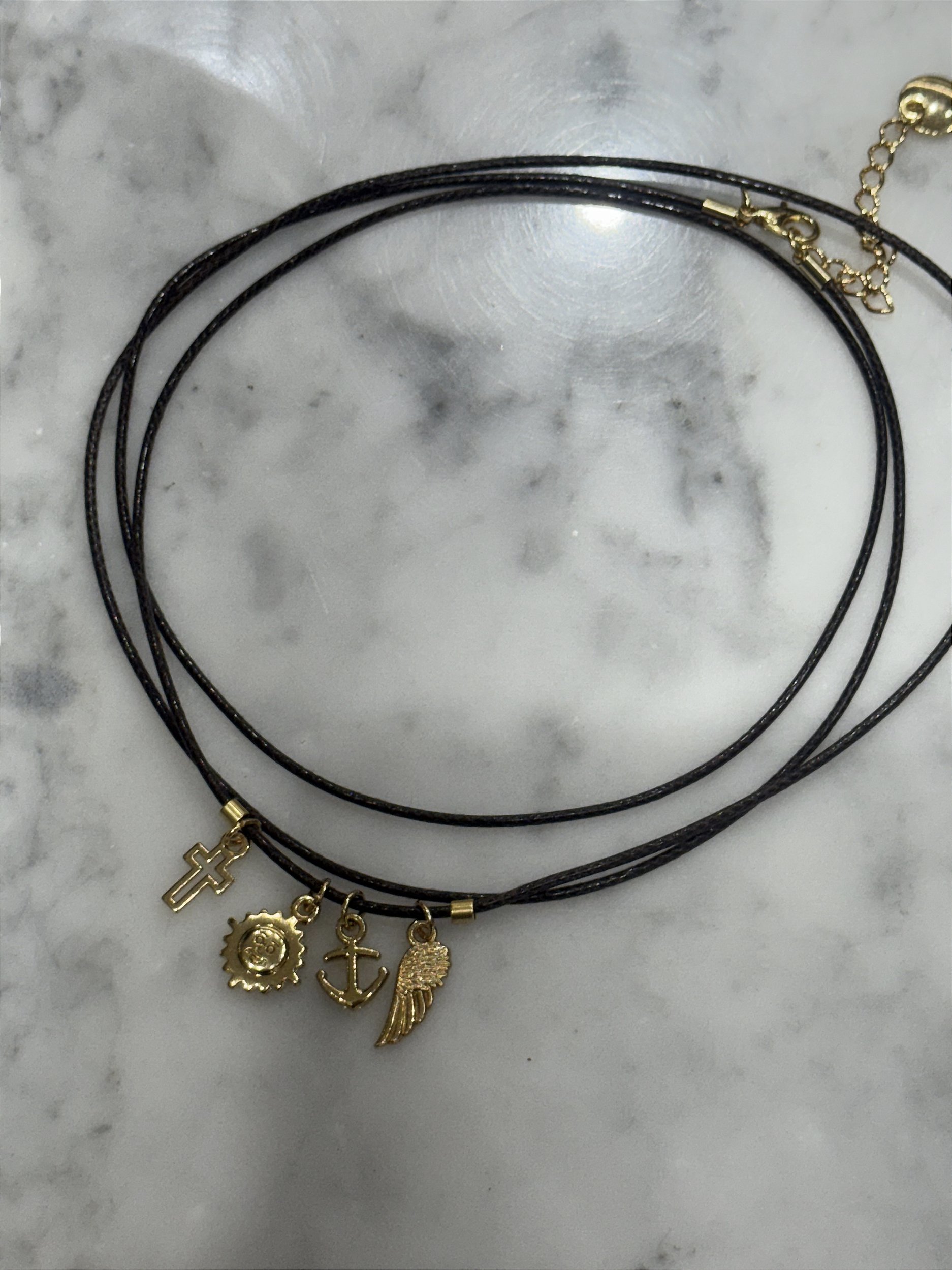choker de fio marrom com aproximadamente 90 cm + extensor.