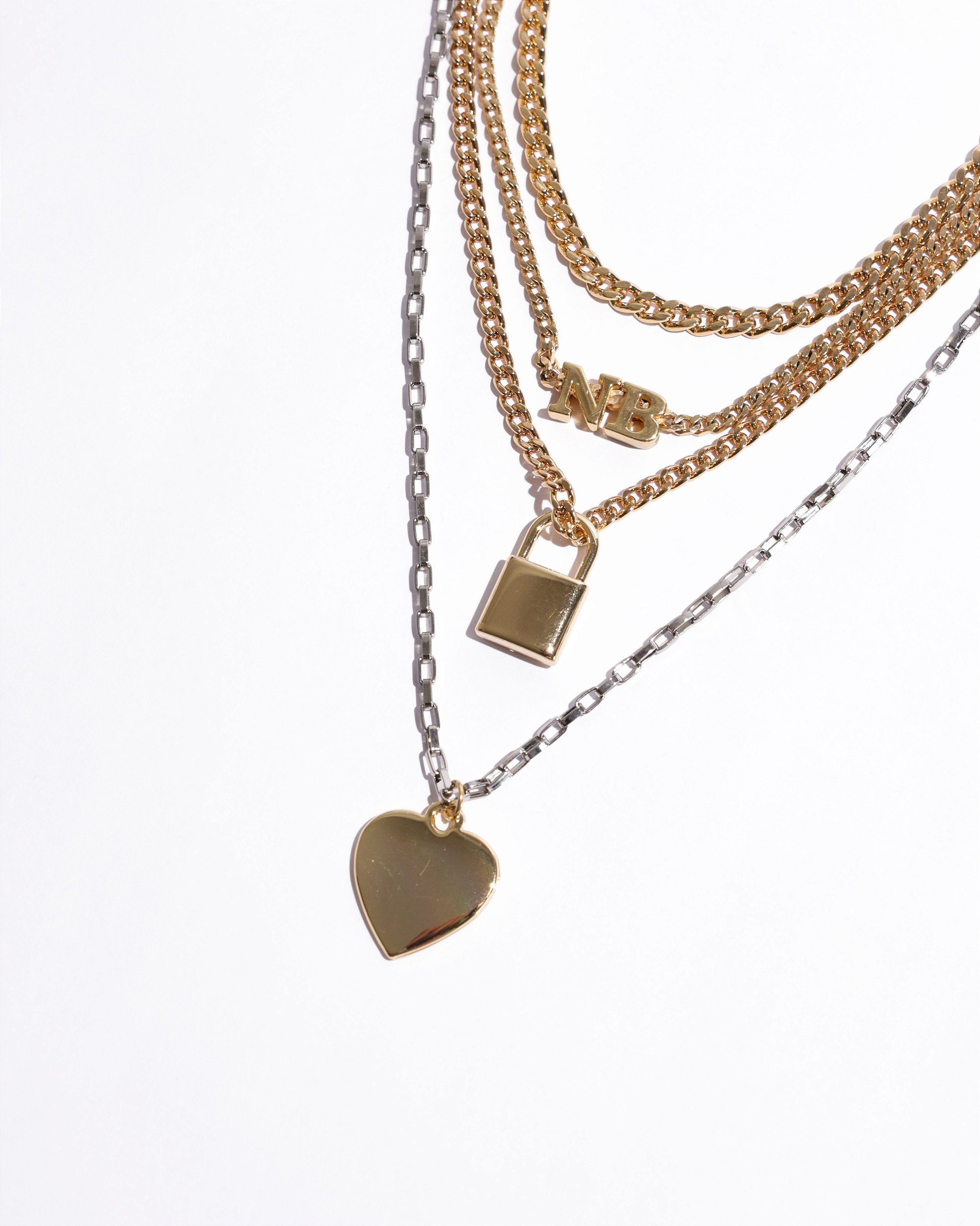 Referente ao colar bicolor com coração. Demais pulseiras, apenas como sugestão de mix.