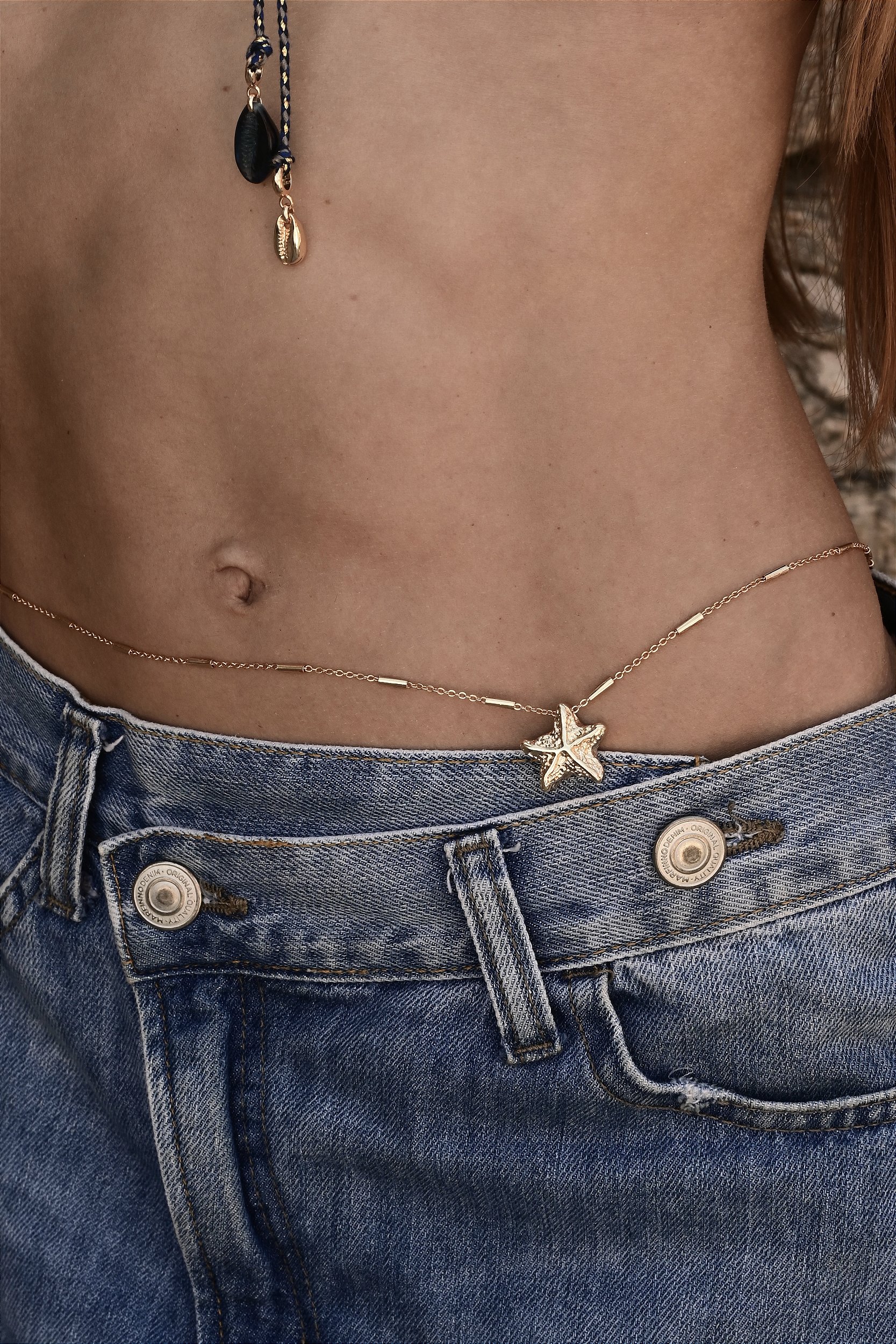 Colar Longo com pingente de estrela, pode se usar dando duas voltas ou na cintura como bodychain.