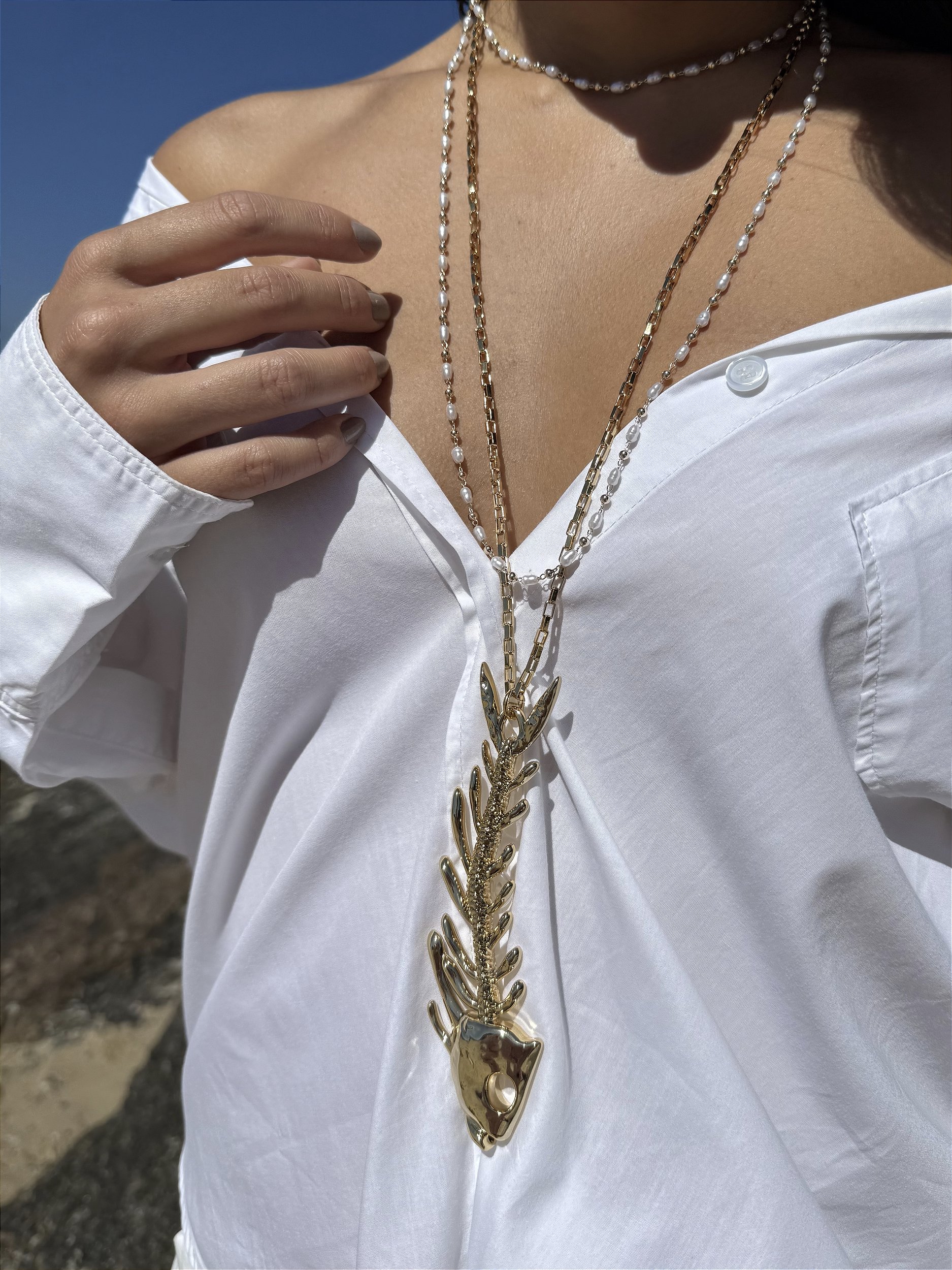 ATENÇÃO: A compra é referente à unidade do Colar Espinha de Peixe. As fotos referente ao mix de colares são meramente ilustrativas como sugestão de uso. O Colar Espinha de Peixe refere-se ao colar da segunda foto.