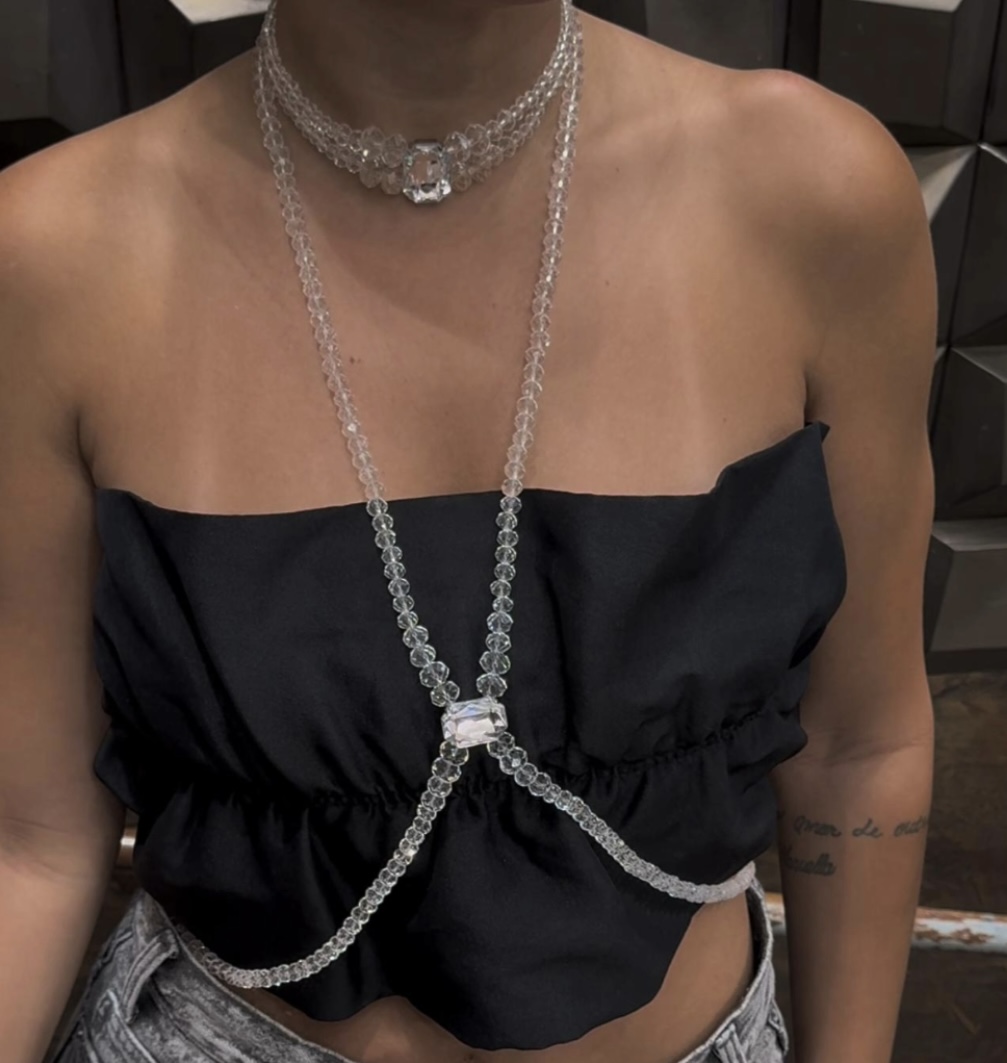 Para comprar o conjunto, precisa selecionar a choker e o bodychain.